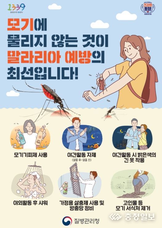 박경운 감염병관리과장은 “말라리아를 예방하기 위해 모기 기피제 사용하기, 야간활동 자제하기, 야간활동 시 밝은색 옷 착용하기 등의 예방수칙이 중요하다”라며 “모기에 물린 후 발열, 오한 등과 같은 증상이 발생하는 경우 즉시 보건소에 방문하여 검사받을 것”을 당부했다.