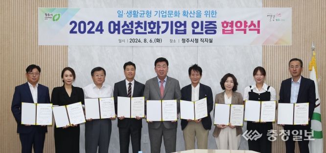 충청일보 김문호 기자 | 청주시는 6일 임시청사 직지실에서 여성친화기업으로 선정한 8개 기업과 인증 협약을 체결했다.