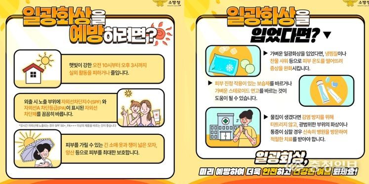 충청일보 박사현 기자 | 홍성소방서는 여름철 폭염으로 인해 발생할 수 있는 일광화상에 각별히 주의를 당부한다고 밝혔다.