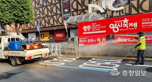충청일보 곽채영 기자 | 대전 중구는 중앙로 일원에서 진행되고 있는‘0시 축제’축제장을 찾는 관광객과 시민들의 감염병으로부터 안전을 위해 지난 8일부터 특별집중 방역을 진행하고 있다고 밝혔다.