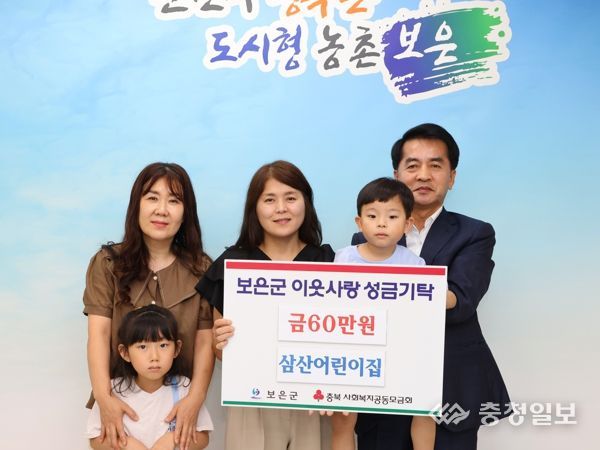충청일보 김문호 기자 | 삼산어린이집 이명성 원장과 아이들은 지난 13일 군청을 방문해 최근 집중호우로 피해를 본 수재민을 위해 써 달라며 성금 60만 원을 기탁했다.