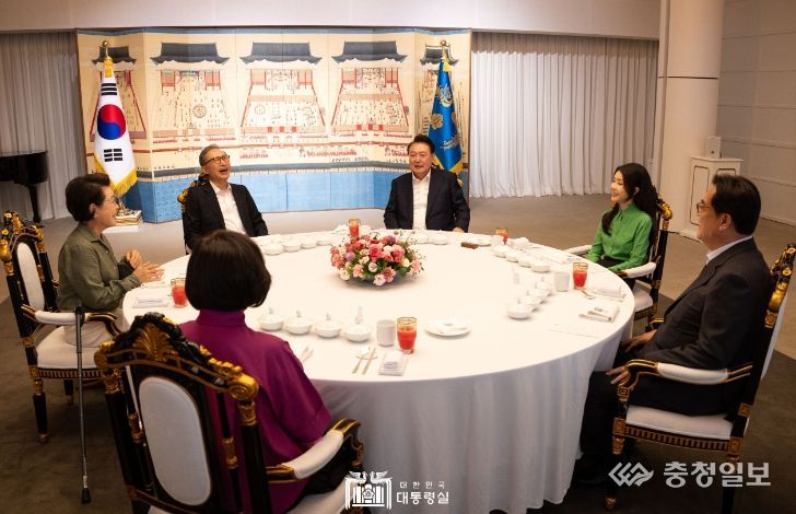 충청일보 김은경 기자 | 윤석열 대통령 부부는 8월 12일 저녁 6시 30분부터 약 3시간 동안 대통령 관저에서 이명박 前 대통령 부부와 만찬을 했다.