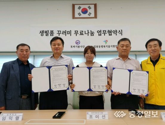 충청일보 박사현 기자 | 천안시 일봉동은 14일 행복키움지원단 또바기봉사단과 취약계층 지원을 위한 생필품 꾸러미 무료나눔 업무협약을 체결했다.
