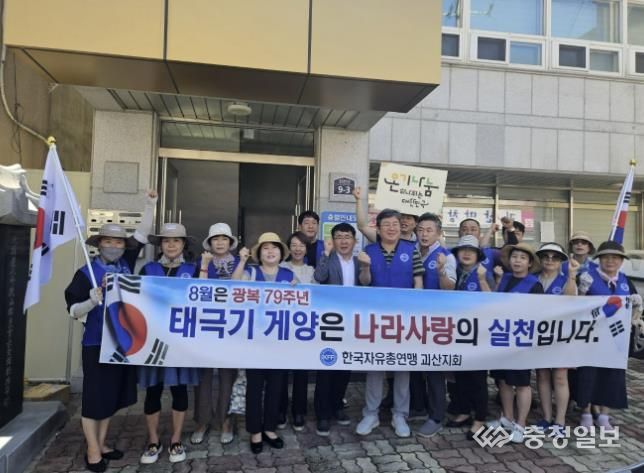 충청일보 김문호 기자 | 한국자유총연맹 괴산군지회는 제79주년 광복절을 맞아 14일 괴산읍 수진리 일원에서 태극기 150기를 세대별로 설치해 주는 태극기사랑 캠페인을 진행했다.