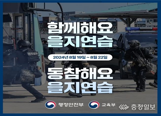 충청일보 김은경 기자 | 교육부는 국가 비상 대비 태세 확립을 위해 8월 19일부터 22일까지 3박 4일간 실시하는 국무총리 주관(행정안전부 총괄) 을지연습에 교육부와 총 248개 교육행정기관의 2만 9천여 명이 참여한다고 밝혔다.