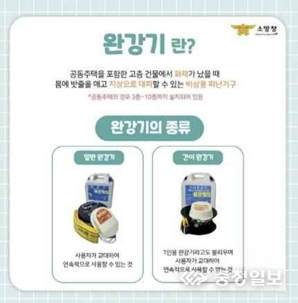 충청일보 박사현 기자 | 서산소방서는 건물 화재 시 계단 등으로 대피가 어려운 경우 안전하게 대피할 수 있는 ‘완강기 사용법’ 홍보에 나섰다.