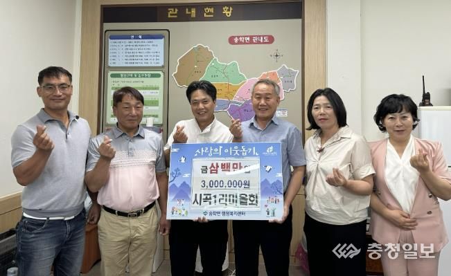 충청일보 김문호 기자 | 지난 19일 제천시 송학면 시곡1리 마을회에서 관내 취약계층을 위해 현금 300만 원을 송학면 행정복지센터에 기탁했다.