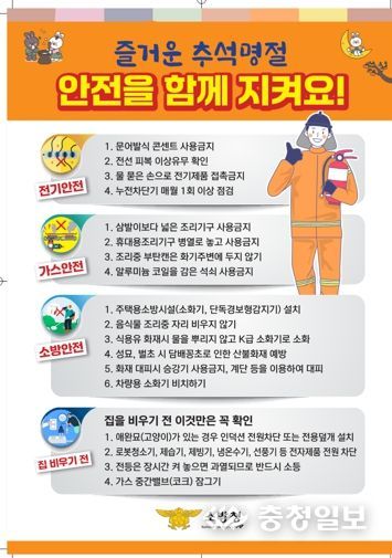 이에 천안서북소방서는 명절 음식 준비 등으로 화기 취급이 증가할 것으로 예상되는 주거시설, 대형 피해가 우려되는 다중이용시설과 전통시장을 대상으로 안전점검, 화재예방 환경조성, 대국민 홍보활동을 추진한다.