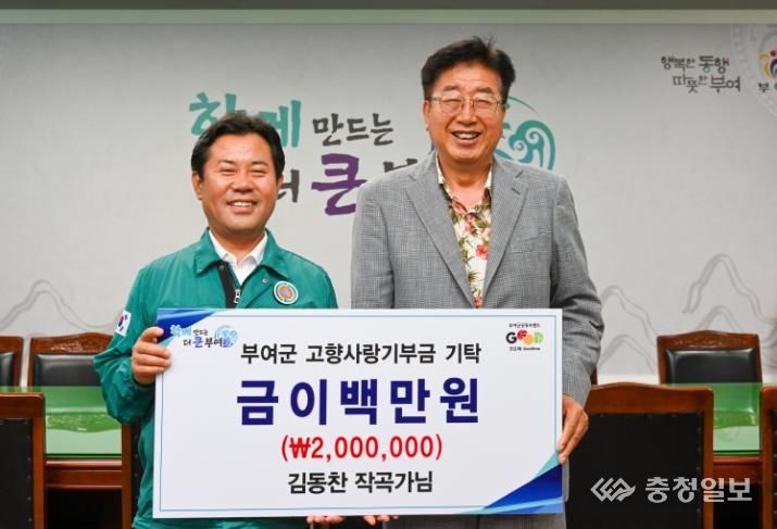 충청일보 박사현 기자 | 부여군 부여읍 저석3리가 고향인 김동찬 작곡가는 지난 21일 부여군(군수 박정현)에 고향사랑기부금 200만 원을 기탁했다.