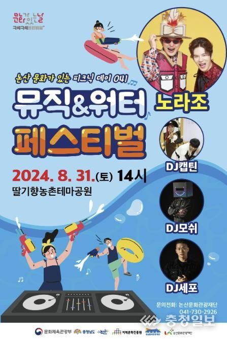 충청일보 박사현 기자 | 논산문화관광재단은 오는 31일 탑정호 딸기향농촌테마공원에서 ‘2024 문화가 있는 날 - 구석구석 문화배달’ 사업의 일환으로 '문화가 있는 피크닉데이 041 – 뮤직·워터 페스티벌' 행사를 개최한다.