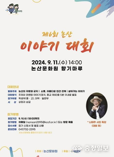 충청일보 박사현 기자 | 논산문화원은 오는 9월 11일 오후 2시 제6회 논산 이야기대회를 개최한다.