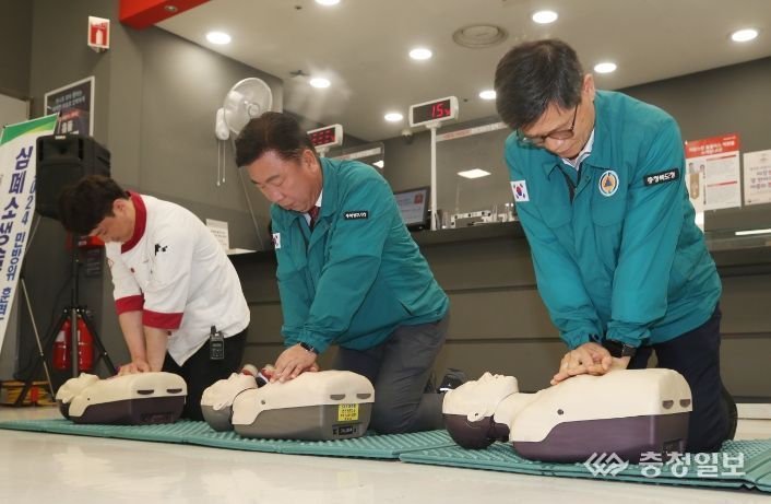 이범석 청주시장 등 시 직원들도 민방위 대피소인 홈플러스 성안점 지하로 대피하는 훈련에 참여했다.