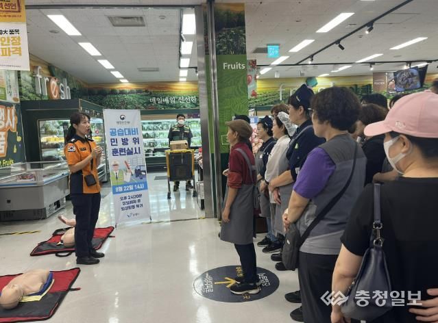 충청일보 박사현 기자 | 보령시는 지난 22일 이마트 보령점에서 매장 직원 및 이용객, 민방위대원, 관계 공무원 등 50여 명이 참여한 가운데 을지연습 연계 공습 대비 민방위 훈련을 진행했다.