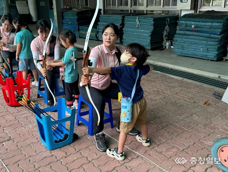충청일보 박사현 기자 | 홍성군청 양궁선수단이 지난 22일 양궁 훈련장에 프라임유치원 원아 94명을 초청해 특별한 경험을 선사했다.