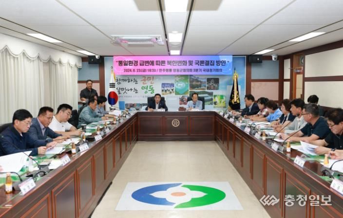 충청일보 김문호 기자 | 민주평화통일자문회의 영동군협의회는 23일 영동군청 상황실에서 영동군수, 자문위원 등 30명이 참석한 가운데‘통일환경 급변에 따른 북한변화 및 국론결집 방안’을 주제로‘2024년 3분기 정기회의’를 개최했다.