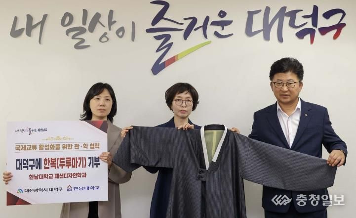 대덕구는 23일 한남대 패션디자인학과로부터 두루마기 한복을 전달받았다고 밝혔다.