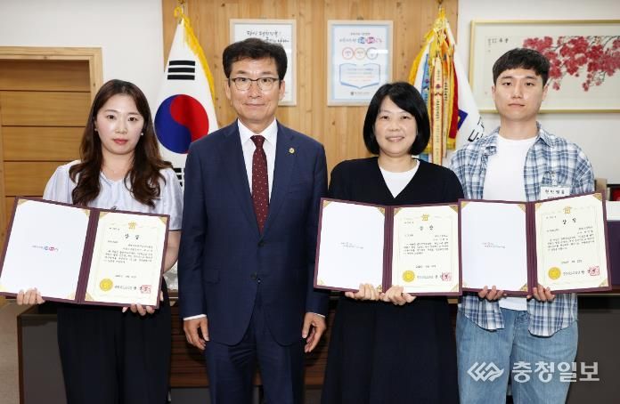 충청일보 김문호 기자 | 충청북도교육청은 23일, 친절교육 원격콘텐츠 명칭 공모에서 선정된 수상자들에게 상장을 수여했다.