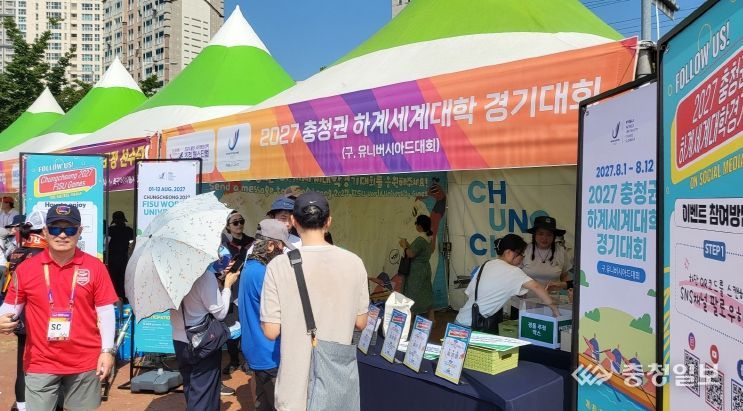 충청일보 박사현 기자 | 세계 명문대학생들의 스포츠 축제 현장에도 홍보의 꽃은 피어난다. 2027 충청권 하계세계대학경기대회 조직위원회가 '2024 울산 세계명문대학 조정 페스티벌'현장에 홍보부스를 운영하며 열띤 홍보전에 뛰어들었다.