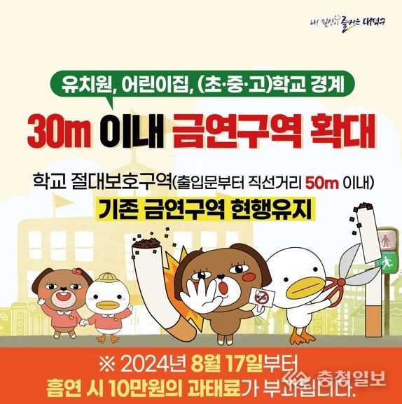 충청일보 곽채영 기자 | 대전 대덕구가 간접흡연 걱정 없는 대덕구 만들기에 나선다.