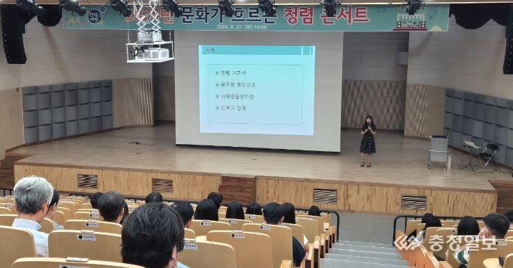 충청일보 김문호 기자 | 청주시는 27일 청원구 내덕동 문화제조창에서 시 산하 4개 구청 직원 300여명을 대상으로 ‘문화가 흐르는 청렴콘서트’를 진행했다고 밝혔다.