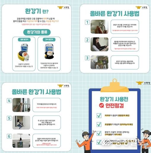 박지영 예방안전과장은 “연기 등으로 인해 대피가 불가능한 경우, 완강기 사용법을 숙지하고 있으면 큰 도움이 된다”며, “완강기 사용법을 몰라 건물에서 뛰어내리거나 잘못 사용해 추락하는 일이 없도록 사용법을 꼭 숙지할 수 있게 지속적으로 교육·홍보하겠다”고 말했다.