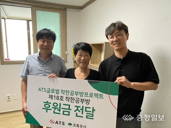 충청일보 김문호 기자 | 초록우산어린이재단 충북지역본부는 ㈜ATS진천의 후원으로 지난 27일 진천군 소재 지원 아동 가정에 '착한 공부방' 환경개선 후원금 300만 원을 전달했다.
