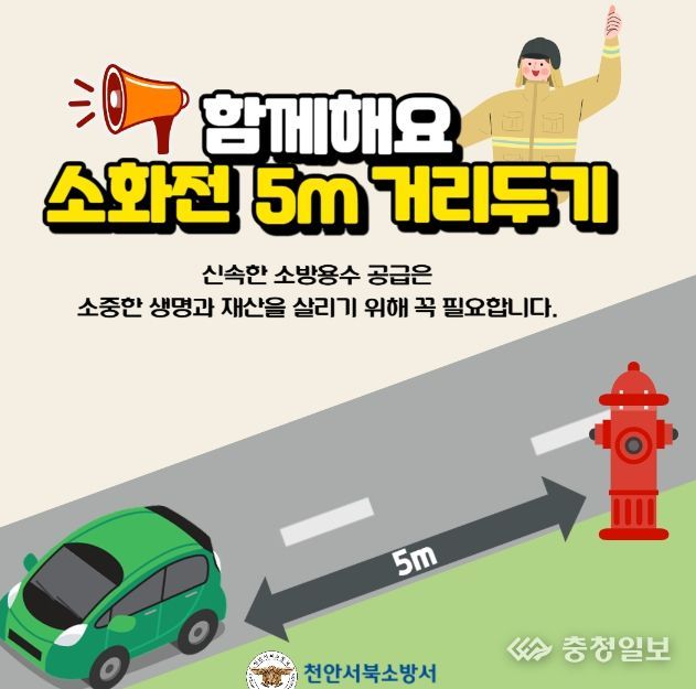 충청일보 박사현 기자 | 천안서북소방서는 화재 발생 시 원활한 소방 활동을 방해하는 소화전 주변 불법 주·정차 금지 홍보에 나섰다.