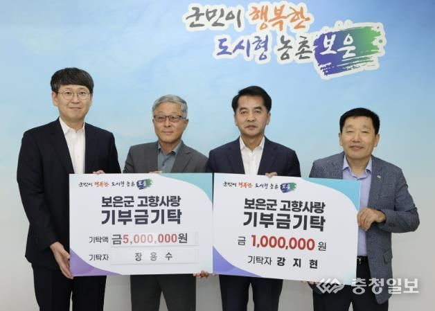 충청일보 김문호 기자 | 보은군은 지난 29일 경기도 여주시에 거주 중인 장용수 씨와 진천군에 거주 중인 강지현 씨가 고향사랑기부금을 기탁했다고 밝혔다.
