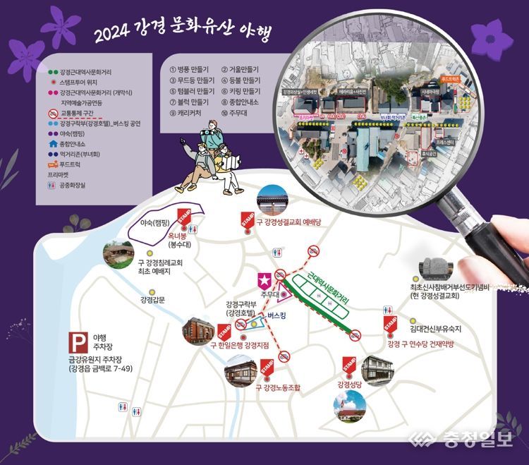 양일 간 진행하는 ‘김대건신부 순례길 투어’와 ‘문화유산 해설사 투어’는 현장접수도 가능하며, 강경 야행에서만 만나볼 수 있는 이야기와 역사적 인물의 발자취를 느끼는 특별한 순간을 선사한다.