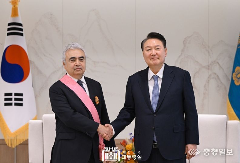 충청일보 김은경 기자 | 윤석열 대통령은 9월 2일 오후 용산 대통령실에서 파티 비롤(Fatih Birol) 국제에너지기구(International Energy Agency: IEA) 사무총장을 접견했다. 비롤 사무총장은 대한민국 정부와 국제에너지기구(IEA)가 공동 개최하는 「기후산업국제박람회」 (9/4~6, 부산)에 참석하기 위해 방한했다.