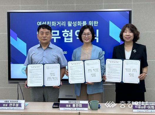 충청일보 김정운 기자 | 세종시사회서비스원에서 운영하는 세종여성플라자는 2일 새롬동 주민자치회, 세종여성새로일하기센터와 새롬동 여성친화거리 활성화를 위한 업무협약을 체결했다.