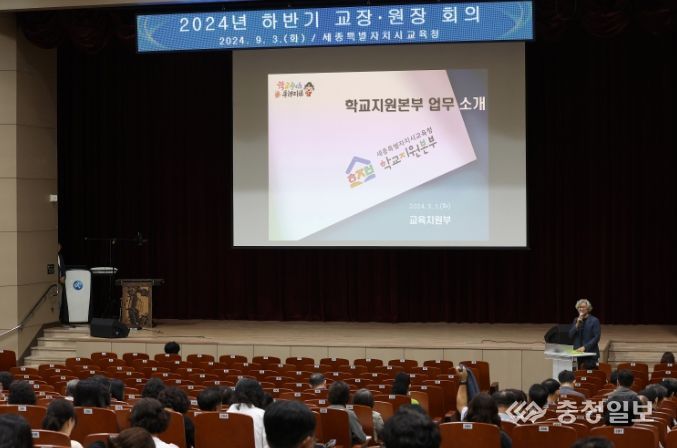 충청일보 김정운 기자 | 세종특별자치시교육청은 9월 3일과 9월 4일 이틀에 걸쳐 세종시교육청교육원에서 세종시 관내 교(원)장 및 교(원)감 전체를 대상으로 ‘2024년 하반기 전체 회의’를 실시했다.