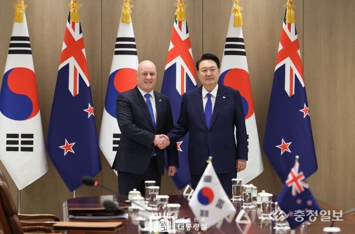 충청일보 김은경 기자 | 윤석열 대통령은 9월 4일 공식방한 중인 '크리스토퍼 럭슨(Christopher Luxon)' 뉴질랜드 총리와 정상회담을 갖고, 양국 간 협력 증진 방안과 지역 및 국제 정세에 대해 폭넓은 의견을 교환했다.