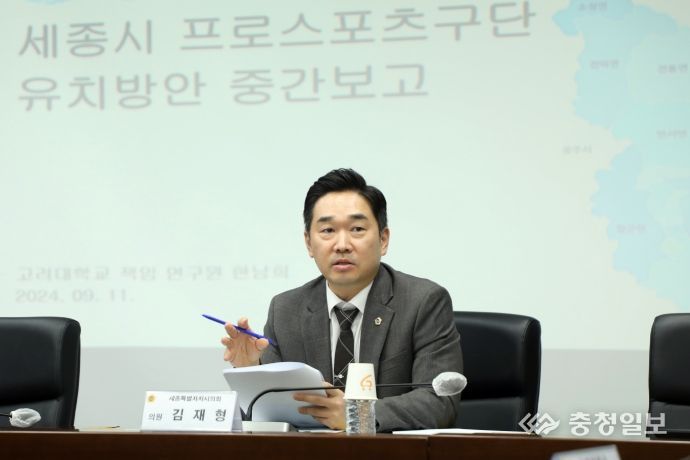 충청일보 김정운 기자 | 세종특별자치시의회는 11일 오후 4시 의회청사 의정실에서 ‘세종 스포노믹스(스포츠산업을 통한 경제활성화) 연구모임(대표의원 김재형)’ 제5차 간담회를 개최하고 ‘프로스포츠 구단 유치방안 검토에 관한 연구용역’ 중간보고회를 가졌다.