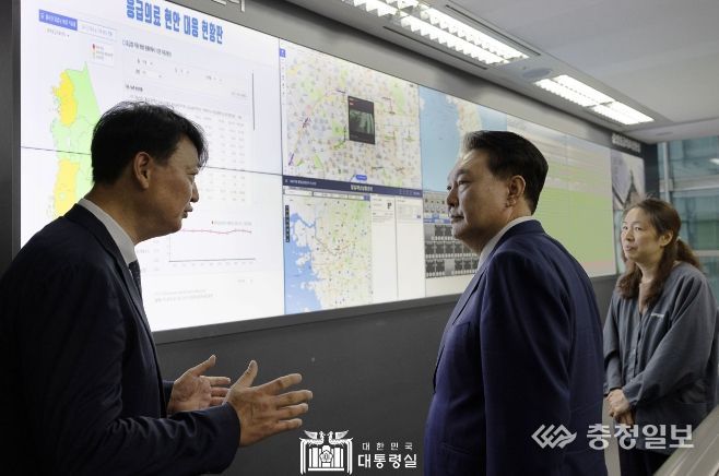 충청일보 김은경 기자 | 윤석열 대통령은 9월 13일 오전 추석 연휴를 앞두고 서울의료원과 중앙응급의료센터를 찾아 응급의료 대응 상황을 점검하고 의료현장을 묵묵히 지키는 의료진의 노고를 격려했다.