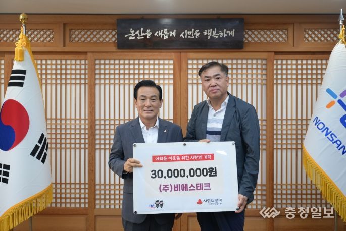 충청일보 박사현 기자 | 논산시는 지난 11일 ㈜비에스테크(대표 윤석봉)에서 추석명절을 맞아 지역사회 내 어려운 이웃을 위한 3천만원을 기탁했다고 전했다.