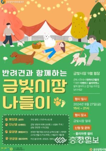 충청일보 박사현 기자 | 금산군은 오는 27일 오후 3시부터 9시까지 금산읍 금산금빛시장에서 반려견과 함께하는 금빛시장 나들이 9월 금산월장을 개최한다.