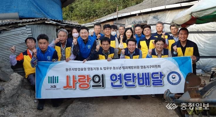 충청일보 김문호 기자 | 법무부 청소년 범죄예방위원 영동지구위원회는 지난 25일 청주지방검찰청 영동지청과 함께 사랑의 연탄배달 봉사활동을 펼쳤다.