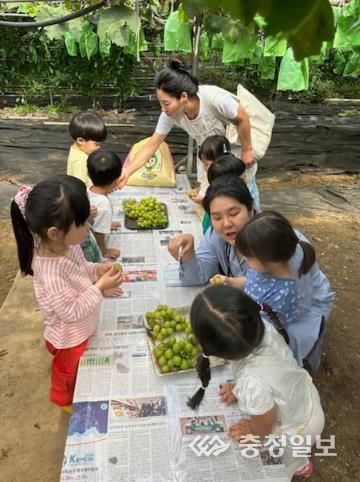충청일보 김문호 기자 | 옥천군농업기술센터는 26일부터 관내 유치원과 어린이집 원생을 대상으로 포도(샤인머스캣) 따기 체험행사를 진행해 안전한 먹거리와 농업·농촌의 소중함을 느낄 수 있는 시간을 갖는다.