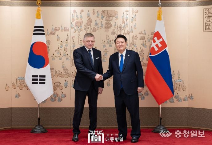 충청일보 김은경 기자 | 윤석열 대통령은 오늘(9. 30, 월) 한국을 공식 방문 중인 '로베르트 피초(Robert Fico)' 슬로바키아 총리와 정상회담을 갖고, 양국 간 협력 증진 방안과 지역 및 국제 정세에 대해 폭넓은 의견을 교환했다.