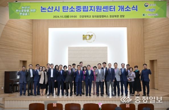 논산시(시장 백성현)는 2일 건양대학교 창의융합캠퍼스 경상학관 강당에서 ‘논산시 탄소중립지원센터 개소식’을 갖고, 탄소중립도시로의 도약을 다짐했다.