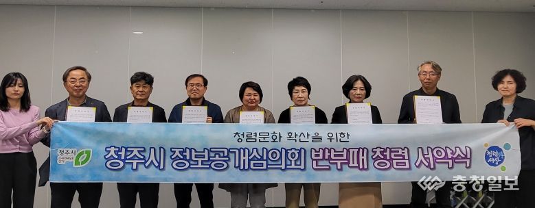 충청일보 김문호 기자 | 청주시 민원과는 청렴문화를 확산하고 투명한 정보공개문화를 조성하기 위해 지난 4일 청주시 정보공개심의회 위원들과 청렴서약식을 가졌다.