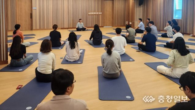 직원들은 마음토닥 명상프로그램, 온열테라피, 버블테라피 등 다양한 프로그램을 경험했다. 또 초정치유마을의 수(水)치유시설과 힐링공간인 명상공원 관람을 통해 치유마을에 대한 이해를 높였다.