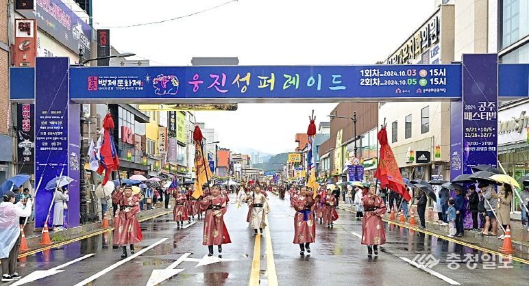 공주시에 따르면, 웅진 백제 공주의 역사성과 독창성이 묻어나는 가장 대표적인 프로그램인 웅진성 퍼레이드가 3일 오후 왕도심 일원에서 화려하게 펼쳐졌다.