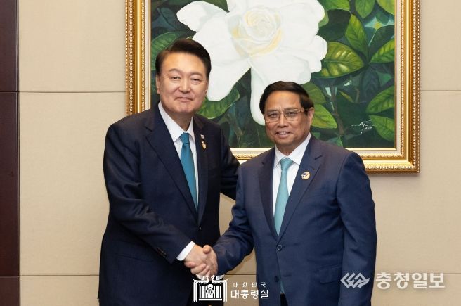 충청일보 김은경 기자 | 아세안 관련 정상회의 참석을 위해 라오스 비엔티안을 방문 중인 윤석열 대통령은 오늘(현지 시간 10. 10, 목) '팜 밍 찡(Pham Minh Chinh)' 베트남 총리와 회담을 가졌다.
