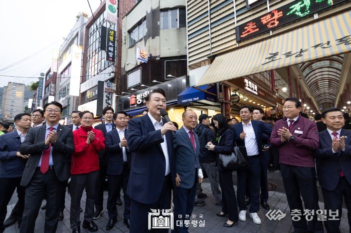 충청일보 김은경 기자 | 윤석열 대통령은 10월 22일 오후 부산역 인근 전통시장인 초량시장을 방문해 시장을 찾은 시민과 상인들을 응원하고 격려하며 민생행보를 이어갔다. 대통령의 부산 전통시장 방문은 이번이 다섯 번째이다.