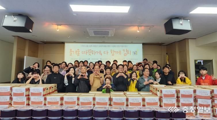 충청일보 박사현 기자 | (재)천안시복지재단은 15일 쌍용종합복지관에서 복지관과 후원자, 천안시복지재단 임직원이 함께 사회공헌 활동 일환으로 ‘사랑의 연합 김장나눔 행사’를 진행했다고 밝혔다.