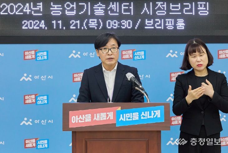 김정규 아산시농업기술센터 소장은 21일 시청 브리핑룸에서 열린 브리핑에서 “신도시와 서부권의 양극화, 기후 위기로 인한 자연재해, 가축전염병 증가, 농촌 인구 감소와 고령화로 인해 농촌의 인력난이 심각하다”며 “이를 해결하기 위해 안정적인 정주 체계 구축과 농업 경쟁력 강화가 필요하다”고 밝혔다.