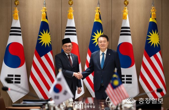 충청일보 김은경 기자 | 윤석열 대통령은 11월 25일 한국을 공식 방문 중인 '안와르 이브라힘(Anwar Ibrahim)' 말레이시아 총리와 정상회담을 갖고, 양국 간 협력 증진 방안과 지역 및 국제 정세에 대해 심도 있게 의견을 교환했다.