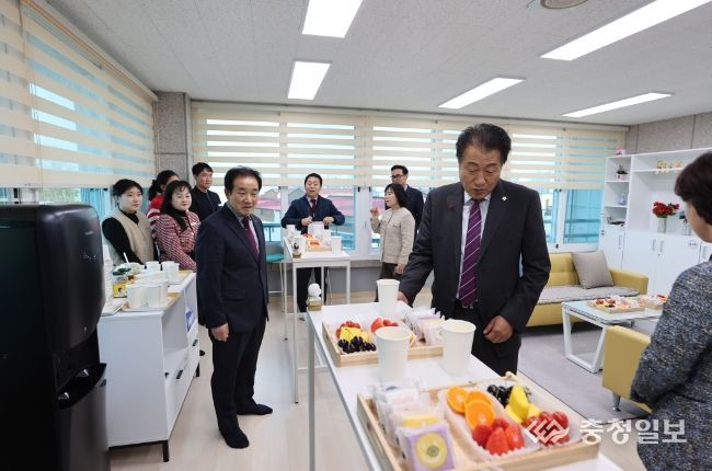 진천군은 직원 근무환경 개선을 위해 11일 송기섭 진천군수, 장동현 진천군의회 의장 등 20여 명이 참석한 가운데 남직원 휴게실 개소식을 개최했다.